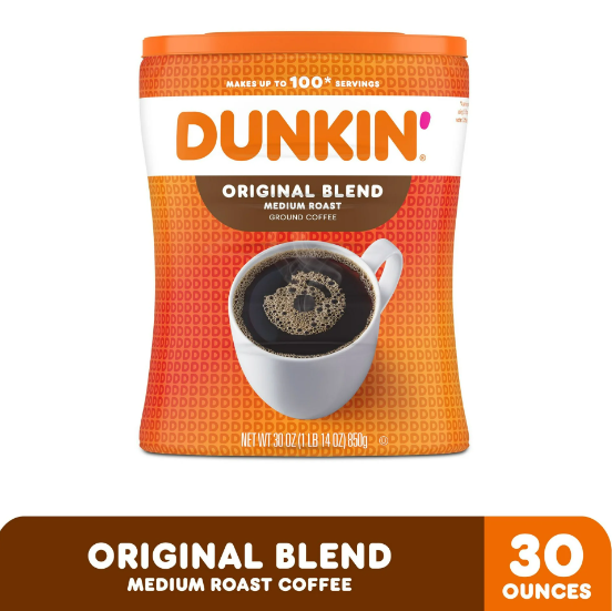 Dunkin’ Original Blend Ground Coffee, Medium Roast, 30-Ounce Canister